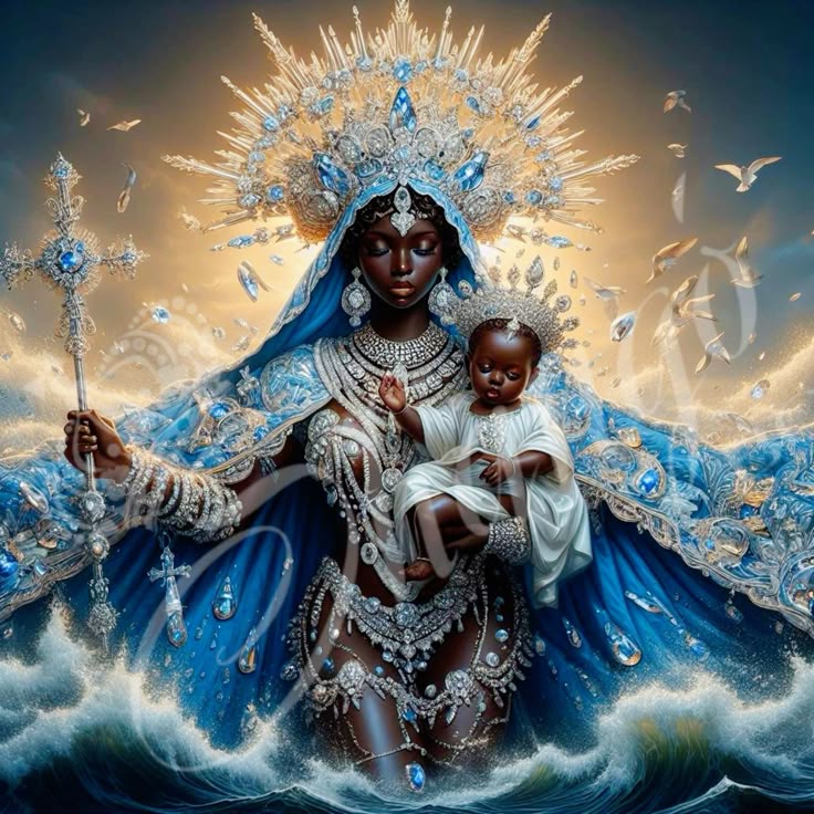 Domain: Yemoja (also spelled Yemayá or Iemanja in the diaspora) is the Mother of the Oceans, the primordial source from which all life emerged. She is the ultimate mother figure, embodying deep nurturing, protection, and the profound mysteries of the subconscious.